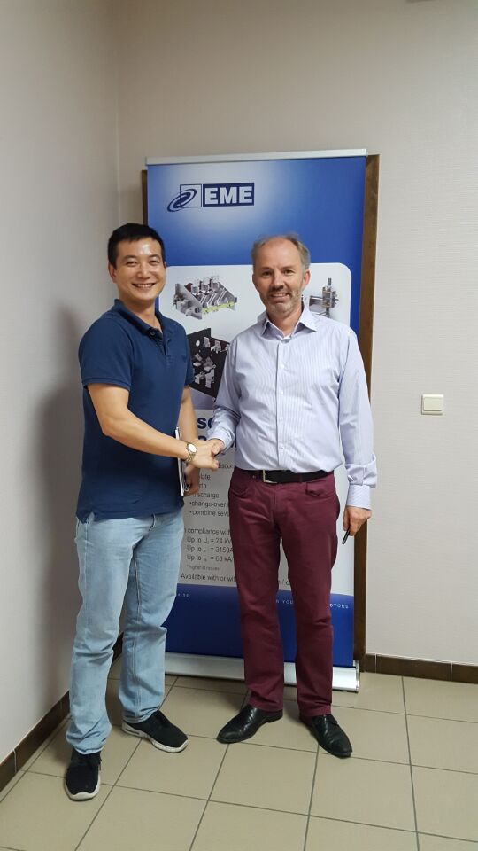 EME公司简介, 公司成立于1961年有Rene Vandereycken先生创立,家族企业以及顺延到第二代,在现任总经理Thierry Vanderycken的领导下 公司已经成为全球范围提供隔离开关电气能源分配和过程优化方面提供整体的解决方案提供商。为了更好的服务zg****市场,并且对zg****市场前景抱有很大的信心的情况下, 在双方总经理相互信任的前提下,双方签署合作代理协议。